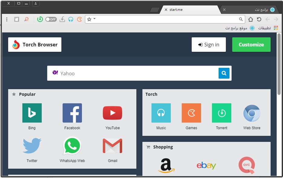 متصفح تورش torch browser متصفح ويب متكامل يغنيك عن الكثير من البرامج والإضافات فهو مدعم بإضافات تحميل الفيديو واليوتيوب والتورنت ويعمل أيضا كمشغل شامل للفيديو. تحميل متصفح تورش مجانا download torch browser متصفح تورش هو عبارة عن برنامج متصفح مجاني وفريدة من نوعها التي توفر لك قوية التصفح. متصفح تورش ليس مجرد متصفح إنه مكتبة متكاملة متصفح تورش torch browser متصفح ويب متكامل يغنيك عن الكثير من البرامج والإضافات فهو مدعم بإضافات تحميل الفيديو واليوتيوب والتورنت ويعمل أيضا كمشغل شامل للفيديو.