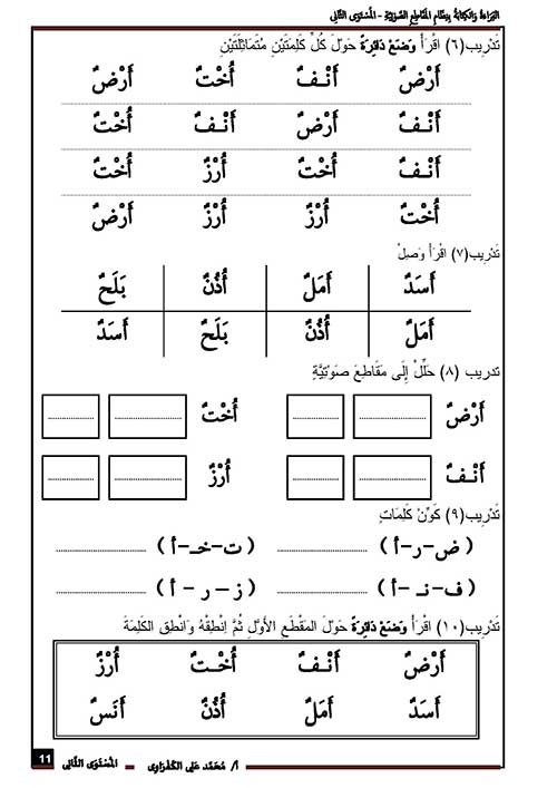 مذكرة تعليم القراءة والكتابة للأطفال بنظام التحليل الصوتي للكلمات المستوى الثانى