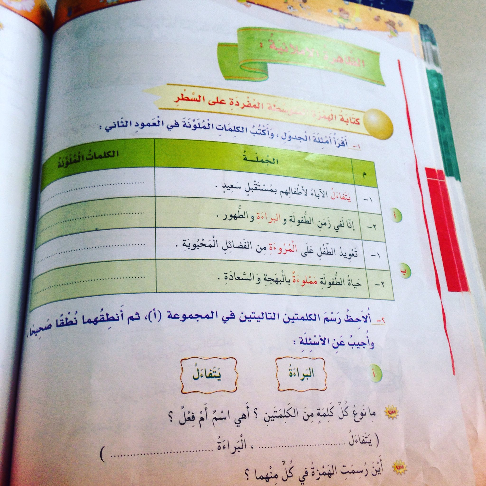 الهمزة المتوسطة المفردة على السطر لغتي الجميلة الفصل الثاني خامس ابتدائي المنهج السعودي
