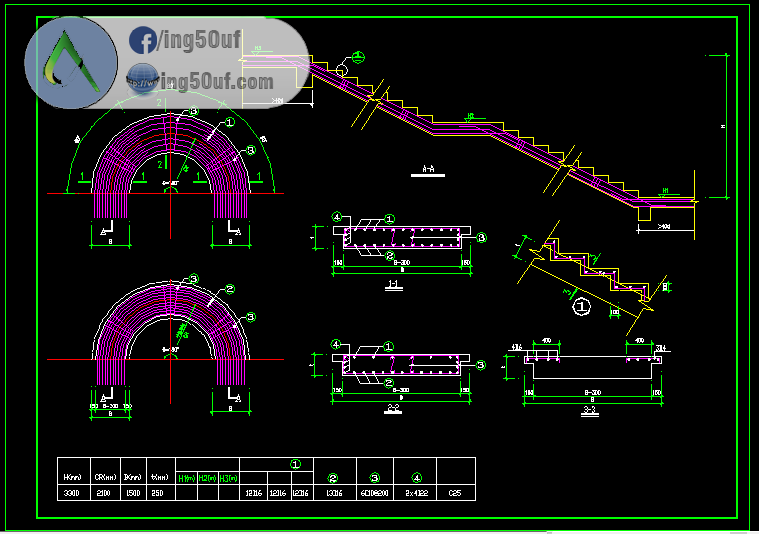 نموذج تسليح السلالم المنحنية اوتوكاد Dwg