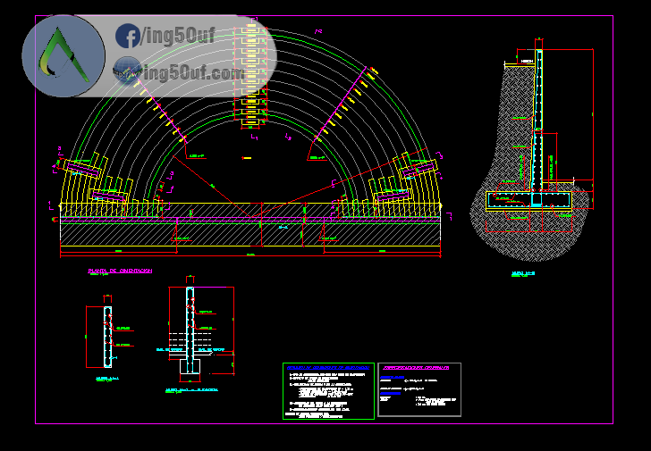 مخطط وهياكل معمارية لمدرج شبه دائري اوتوكاد Dwg