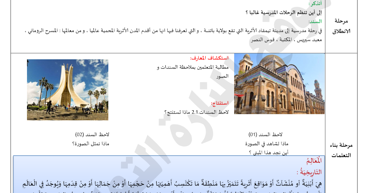 درس المعالم التاريخية في التاريخ ولكم أساتذة الحراش للسنة الخامسة ابتدائي الجيل الثاني Facebook