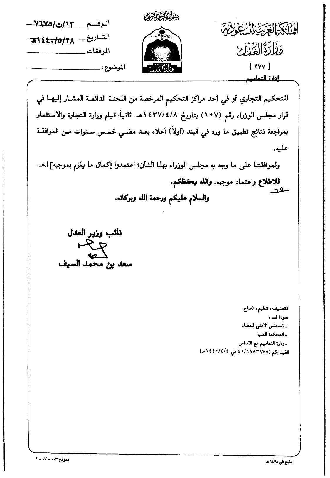 خــالـد قانون Auf Twitter تعميم رقم 13 ت 7675 في 1440 5 28هـ المتضمن على الجهات الحكومية والشركات المملوكة للدولة في حال رغبتها في تسوية خلافاتها مع المستثمر الأجنبي عن طريق التحكيم أخذ الموافقات