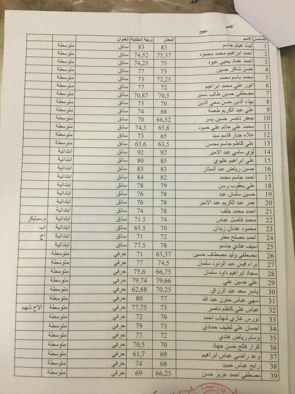 اسماء المقبولين في تعيينات مقر وزارة الصحة العراقية 10 11 2016