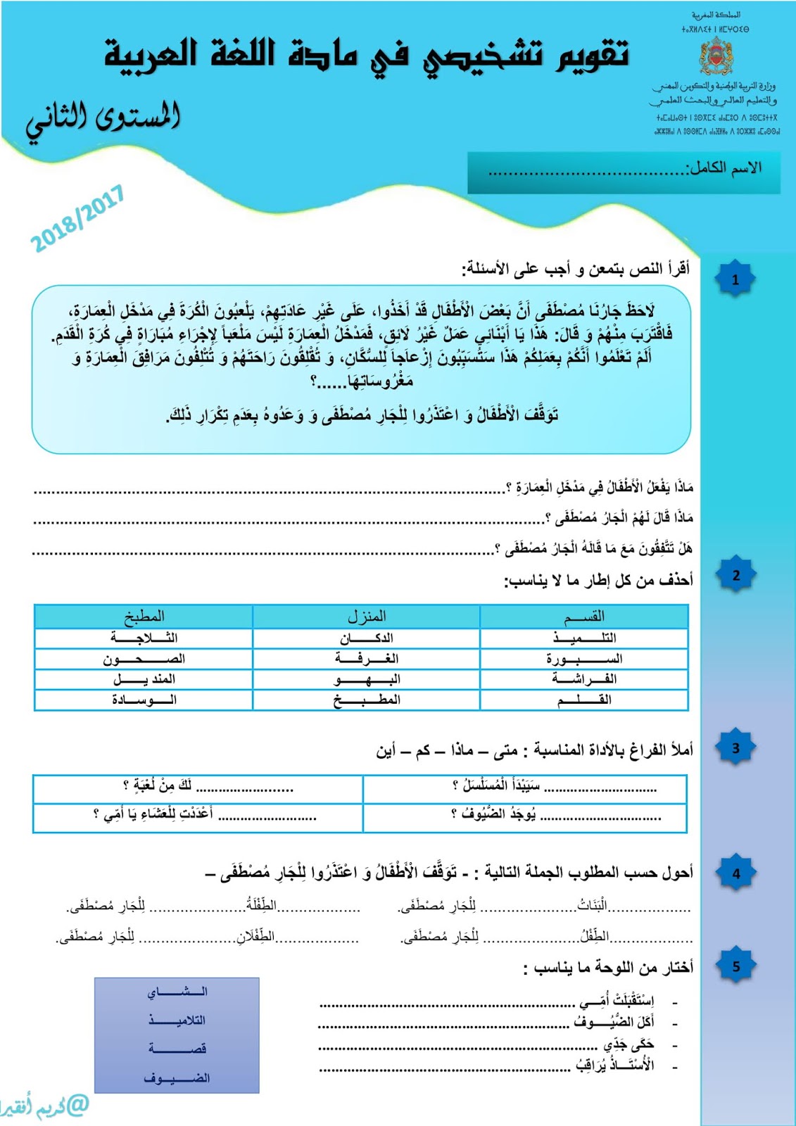 روائز التقويم التشخيصي المستوى الرابع ابتدائي 2019 2020 Moutamadris Ma